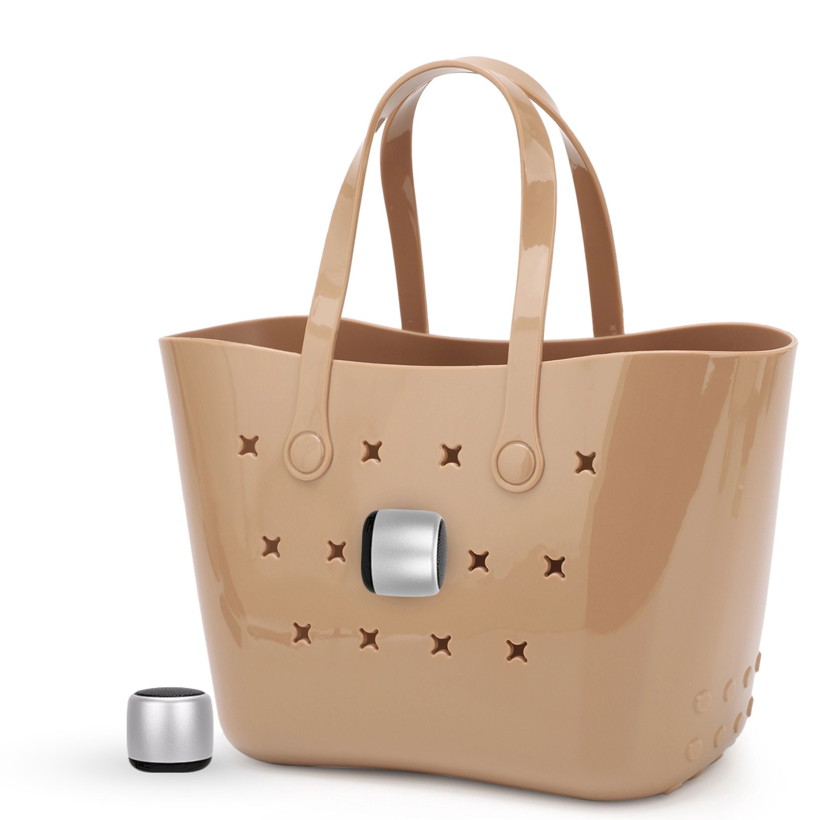 ToteTunes is a portable Bluetooth speaker designed to attach securely to your tote bag so you can enjoy music wherever you go. Whether you're heading to the beach, pool, park, or travel day, your sound travels with you.
